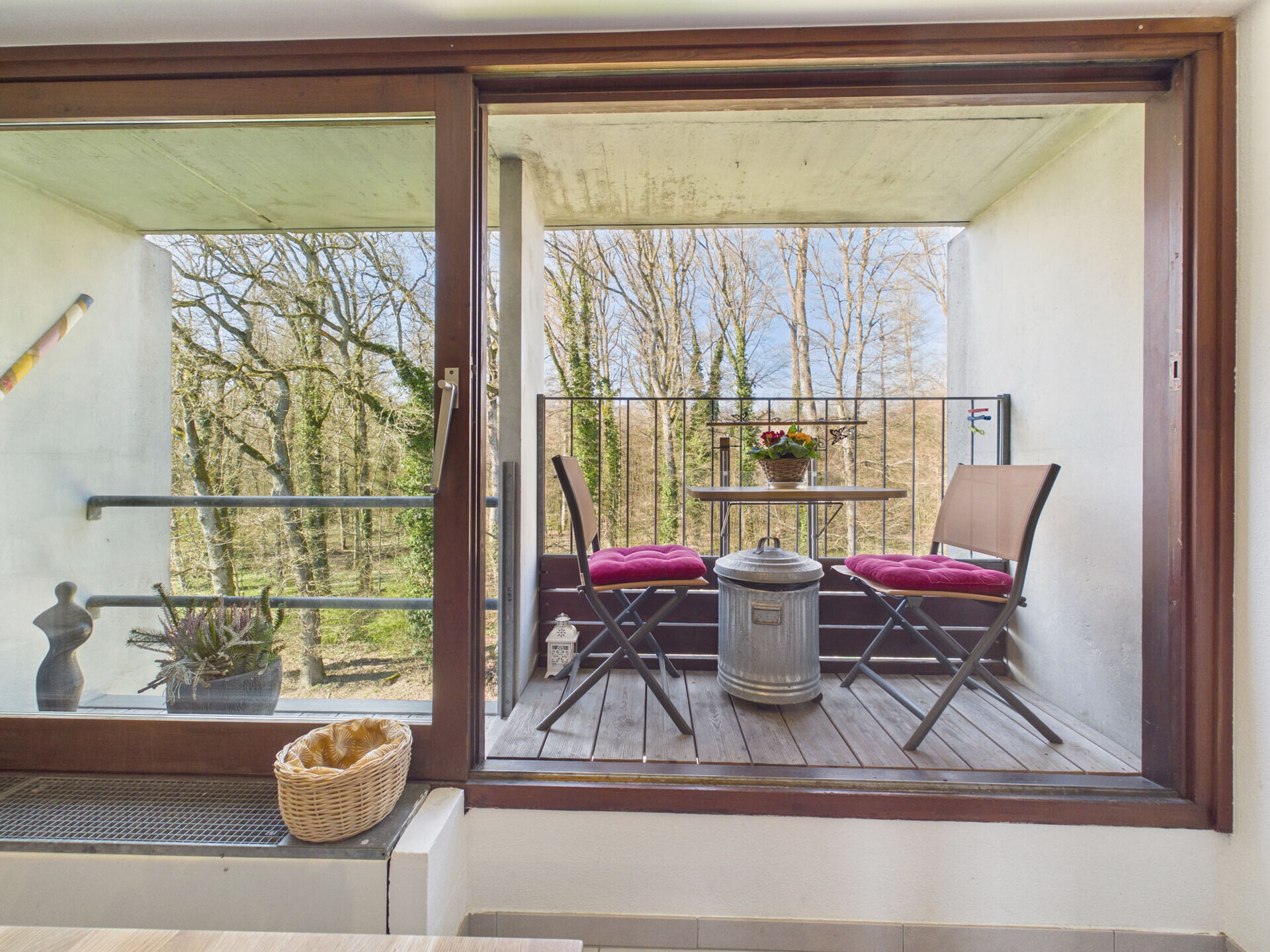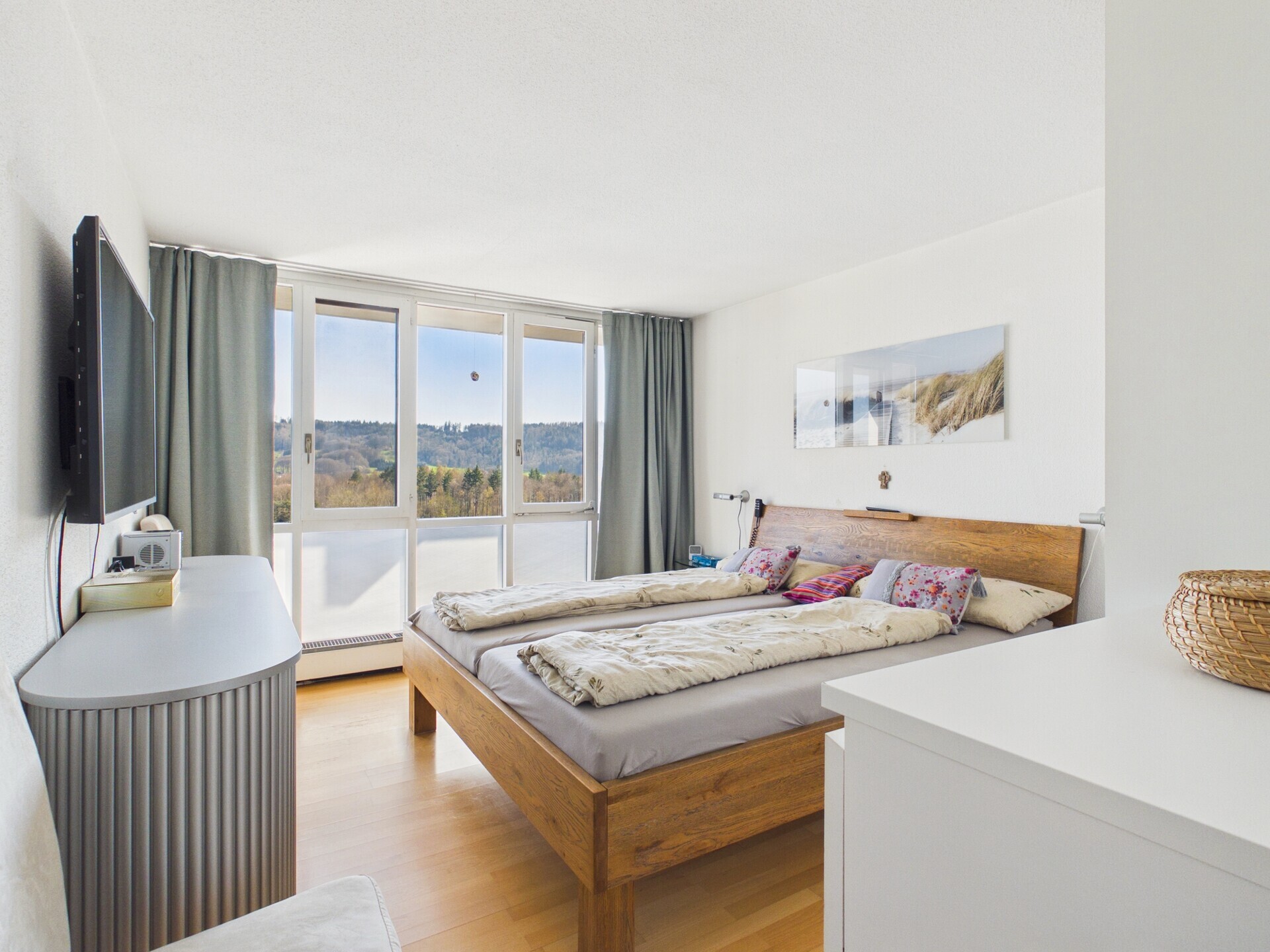 Die 4½-Zimmer-Duplexwohnung besticht durch eine ideale Aufteilung in Wohn- und Schlafbereich auf zwei Geschossen. Im unteren Geschoss befindet sich der Eingangsbereich mit Badezimmer und drei Schlafzimmern.Über eine Treppe erreichen Sie das obere Geschoss mit dem Wohnzimmer und der angrenzenden Panorama-Terrasse Richtung Süden. Auf der Nordseite erstreckt sich die L-förmige Küche sowie der Essbereich mit atemberaubender Aussicht in den Wald. Eine kleine Loggia im Anschluss an den Essbereich vermittelt das Gefühl vom Leben im Baumhaus.