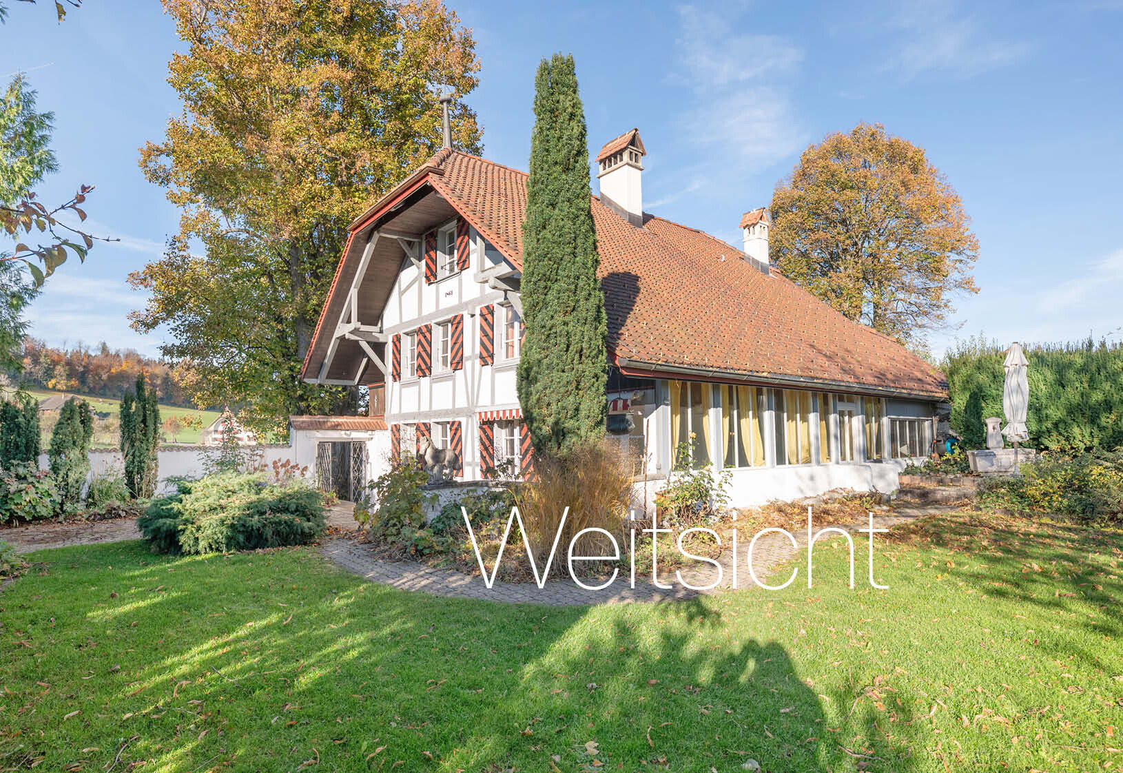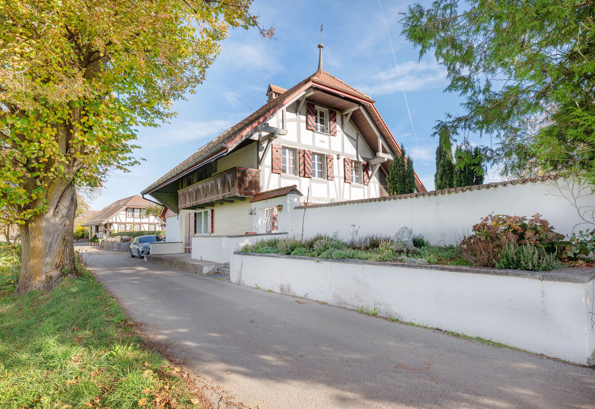 Der charmante Riegbau – ein ehemaliges Bauernhaus aus dem Jahr 1861 – befindet sich in erhöhter Aussichtslage auf dem idyllischen Belpberg, eingebettet in einen ruhigen Weiler mit Einfamilienhäusern und Villen.