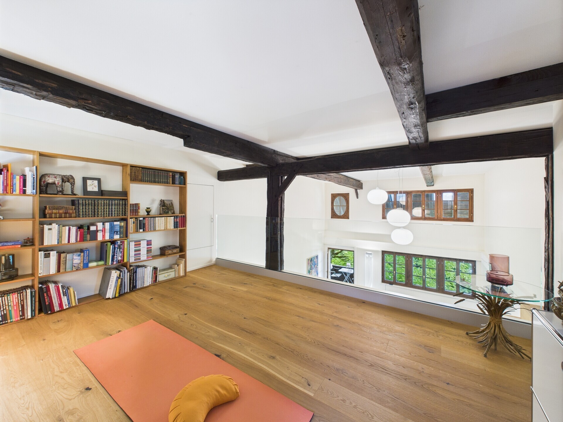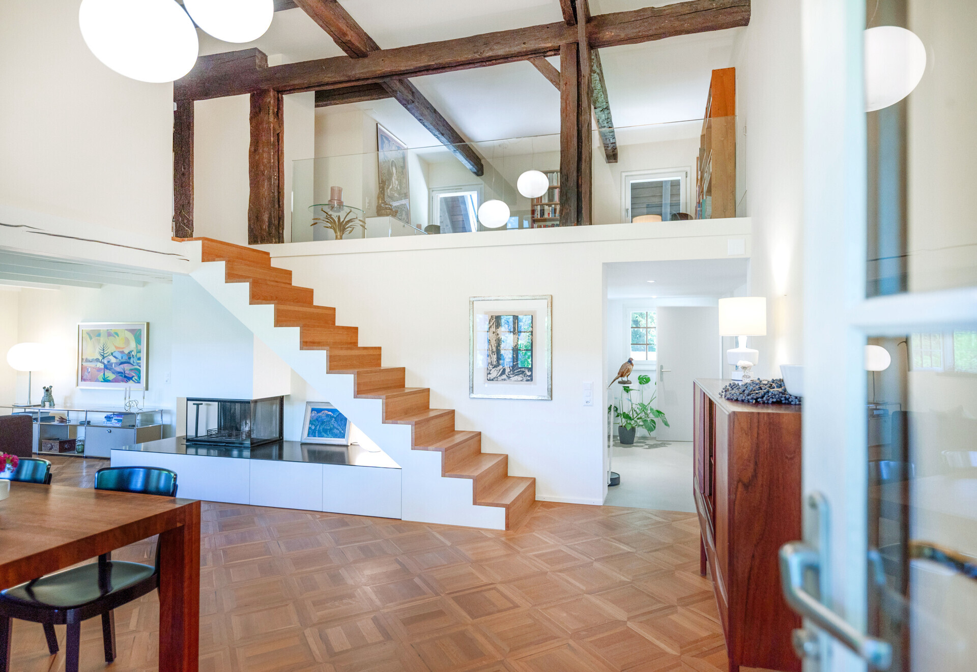 Das Wohnhaus beherbergt den hochwertig sanierten 4½-Zimmer-Hauptteil sowie eine separate Studiowohnung. Die Hauptwohnsitz wurde 2018 liebevoll kernsaniert – alte Balken, ein gemütliches Cheminée und eine edle Innenausstattung über zwei Etagen schaffen ein harmonisches Zusammenspiel von Alt und Neu. Ein Panoramafenster im Wohnbereich bietet einen traumhaften Blick auf den Wohlensee, und sowohl die gedeckte Laube als auch die Terrasse laden zum Geniessen ein.Die Studiowohnung wurde 2013 modernisiert und kann bei Bedarf über den Estrich mit der Hauptwohnung verbunden werden.