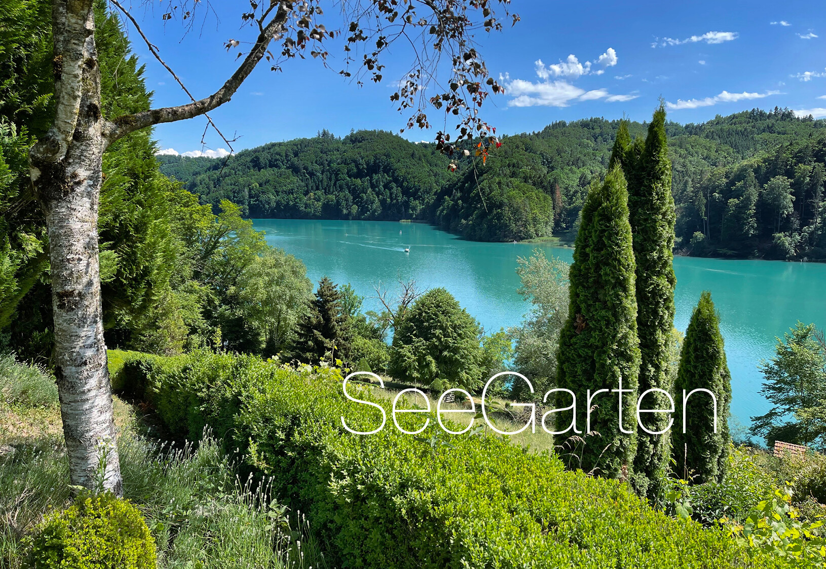 Ein besonderes Juwel der Liegenschaft ist die weitläufige Gartenanlage mit altem Baumbestand und vielfältigen Themenbereichen: Entdecken Sie den Obstgarten, flanieren Sie durch den Rosengarten oder den Woodland Walk, spazieren Sie durch den Bambuswald, verweilen Sie am Teichgarten oder pflegen Sie Ihren eigenen Gemüsegarten. Selbst ein grünes Labyrinth und ein englisches Glasgewächshaus gehören zu diesem einzigartigen Anwesen. Über das gesamte Gartenparadies hinweg laden zahlreiche Bänke und versteckte Sitzplätze dazu ein, innezuhalten, den Ausblick zu geniessen – oder einfach dem Flüstern der Natur zu lauschen. Für gesellige Stunden im Freien steht ein stilvoller Grillpavillon mit Sommergarten („Hotgarden“) und grandiosem Ausblick zur Verfügung.