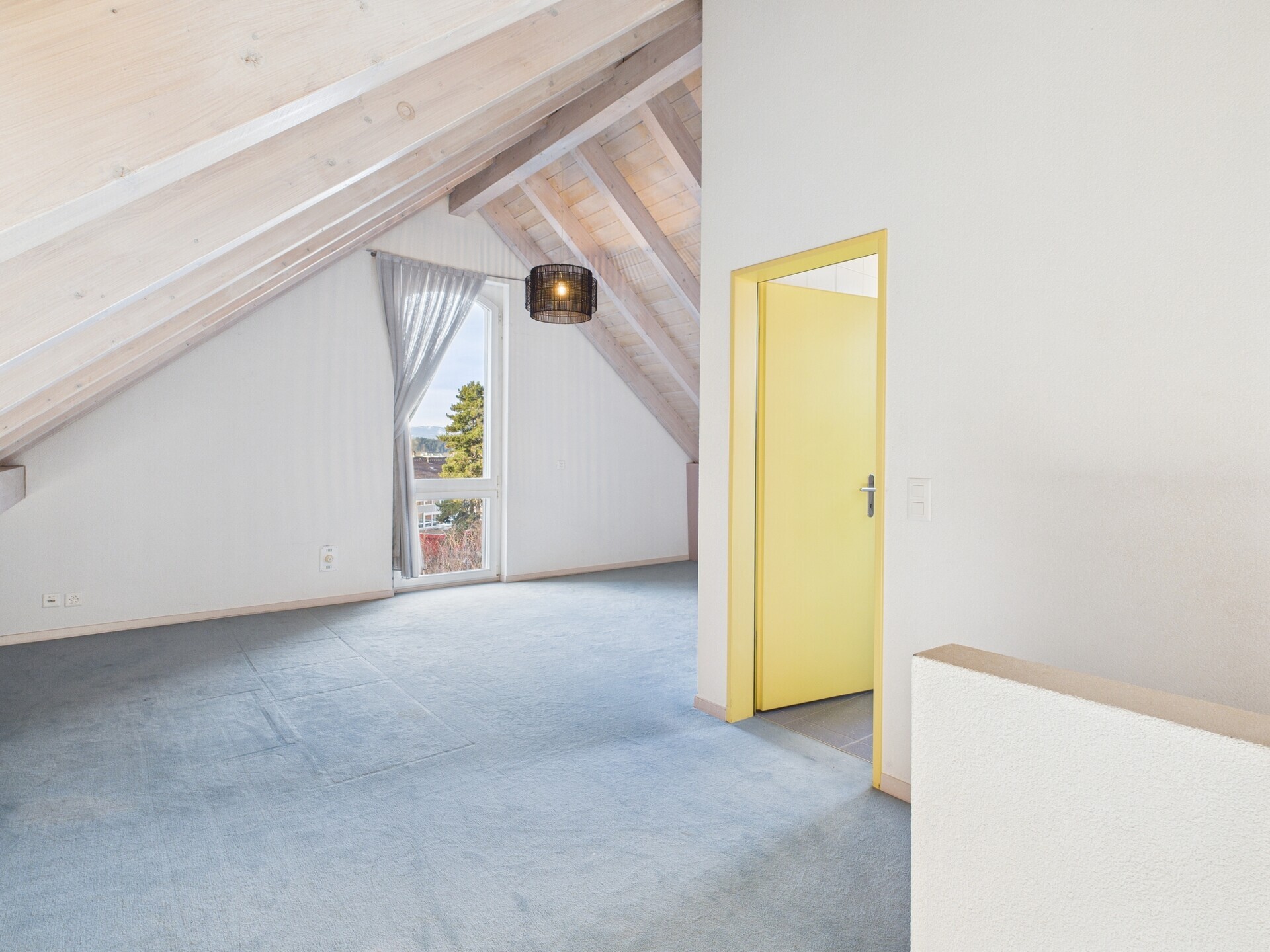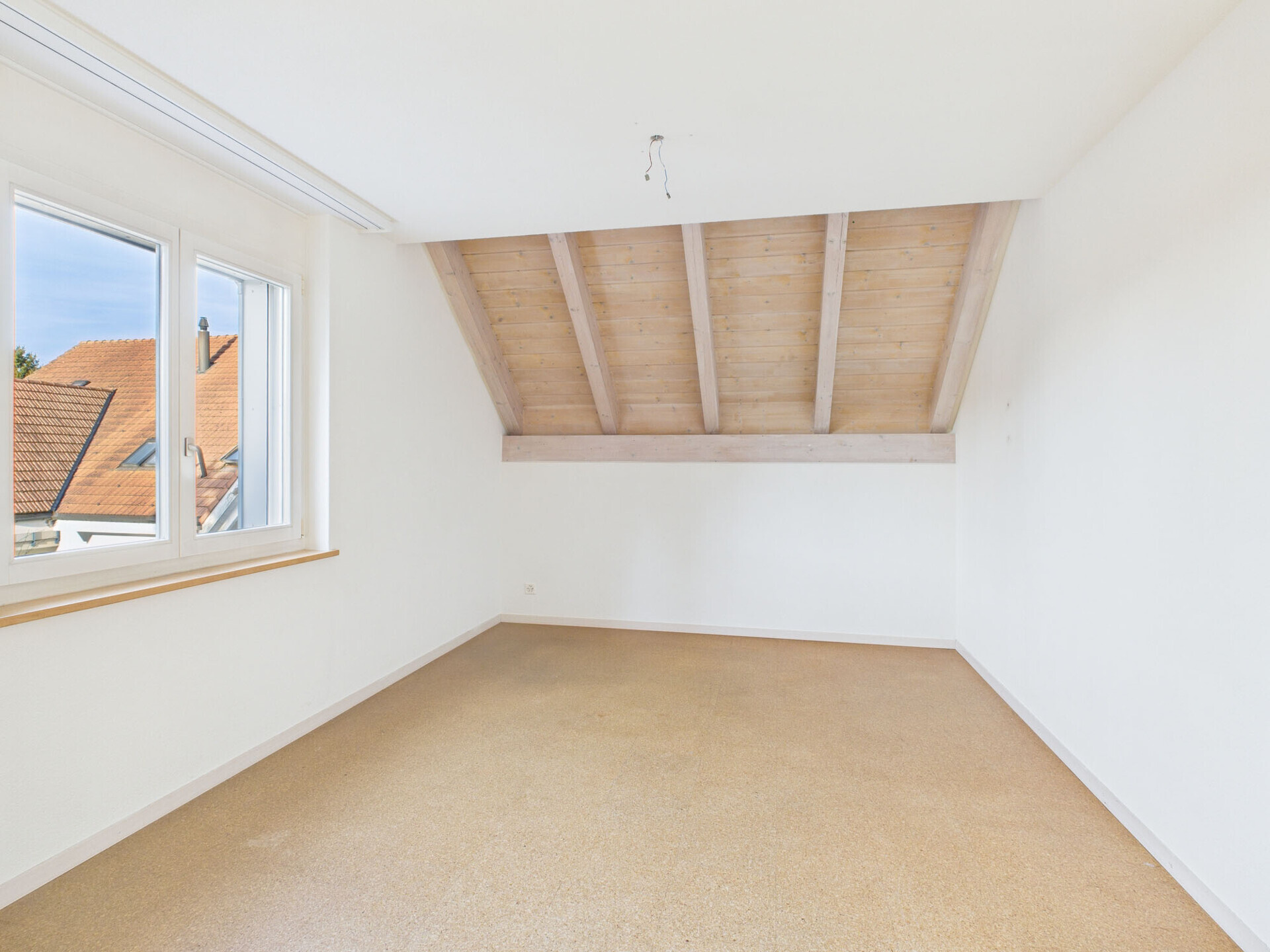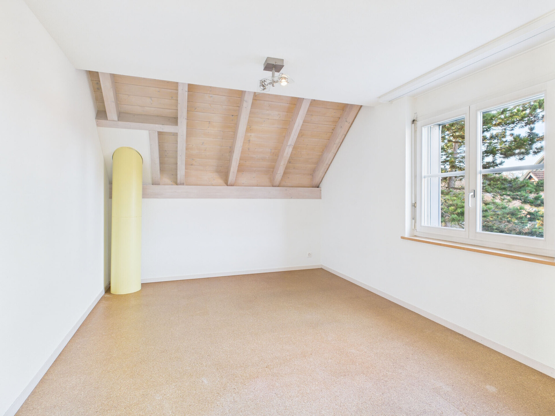 Im Dachgeschoss ist ein Schlafzimmer mit charmanter Dachnische sowie ein separates Badezimmer mit Dusche und WC untergebracht. Diese Etage schafft einen privaten Rückzugsort und rundet das grosszügige Raumangebot ideal ab.