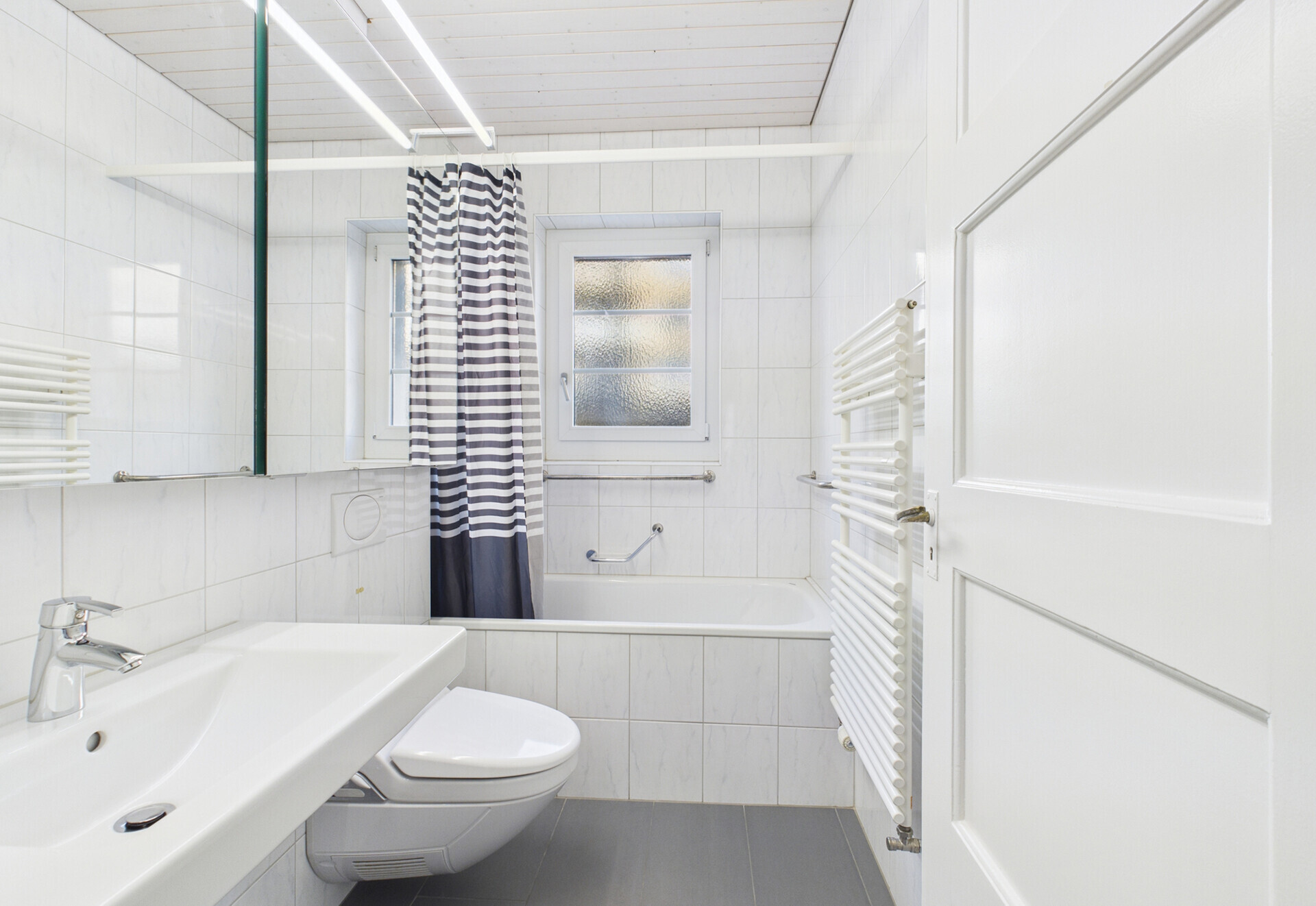 • Badezimmer mit Wanne, Lavabo und Toilette