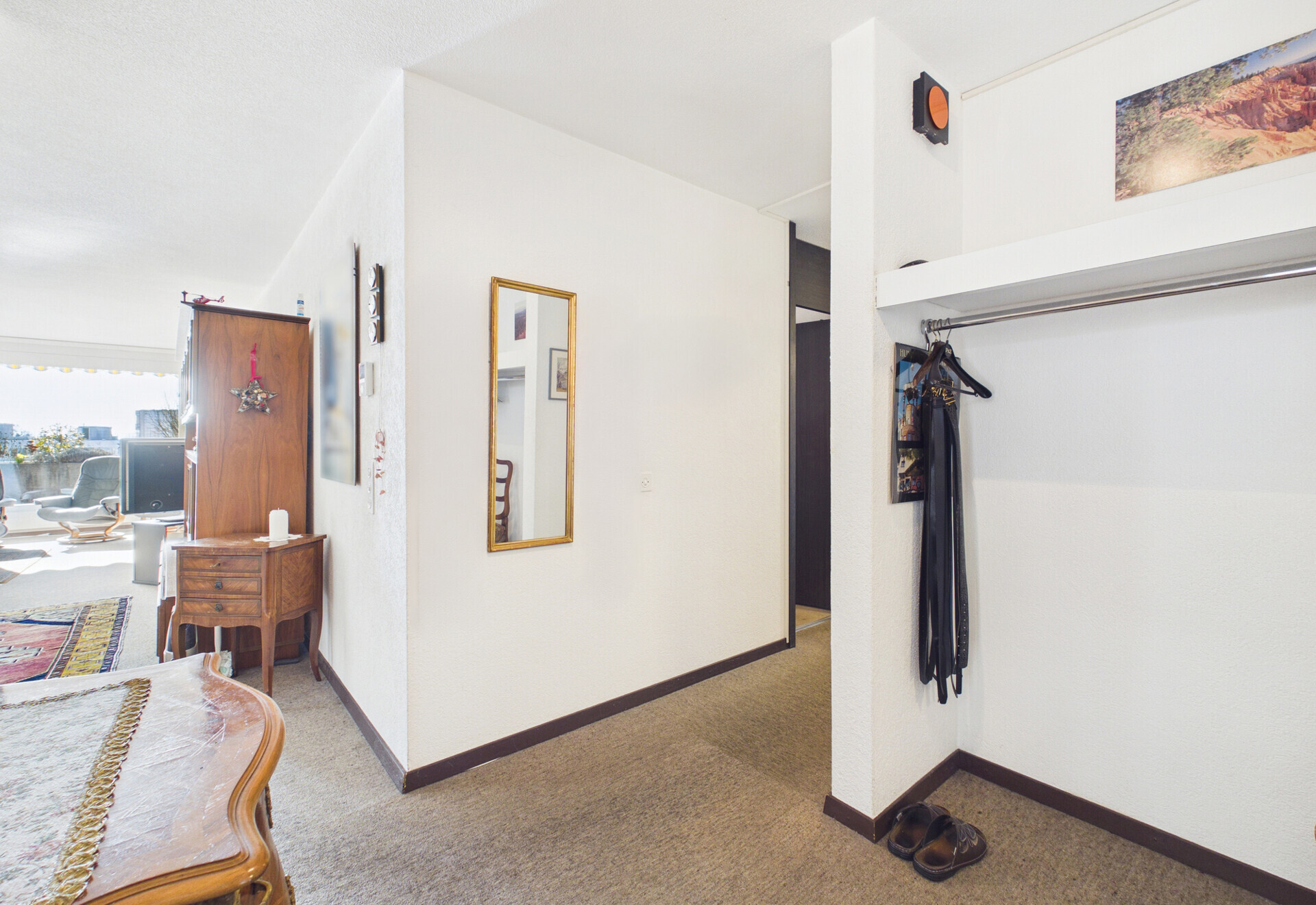 Auf der Nordseite des Hauses befinden sich Dusche, Gästetoilette, ein beheizter Büro-/Disporaum, die Waschküche sowie der Keller. Ein zusätzlicher Geräteraum beim Hauseingang bietet weiteren Stauraum. Ergänzend steht in der Einstellhalle ein separates Kellerabteil zur Verfügung.