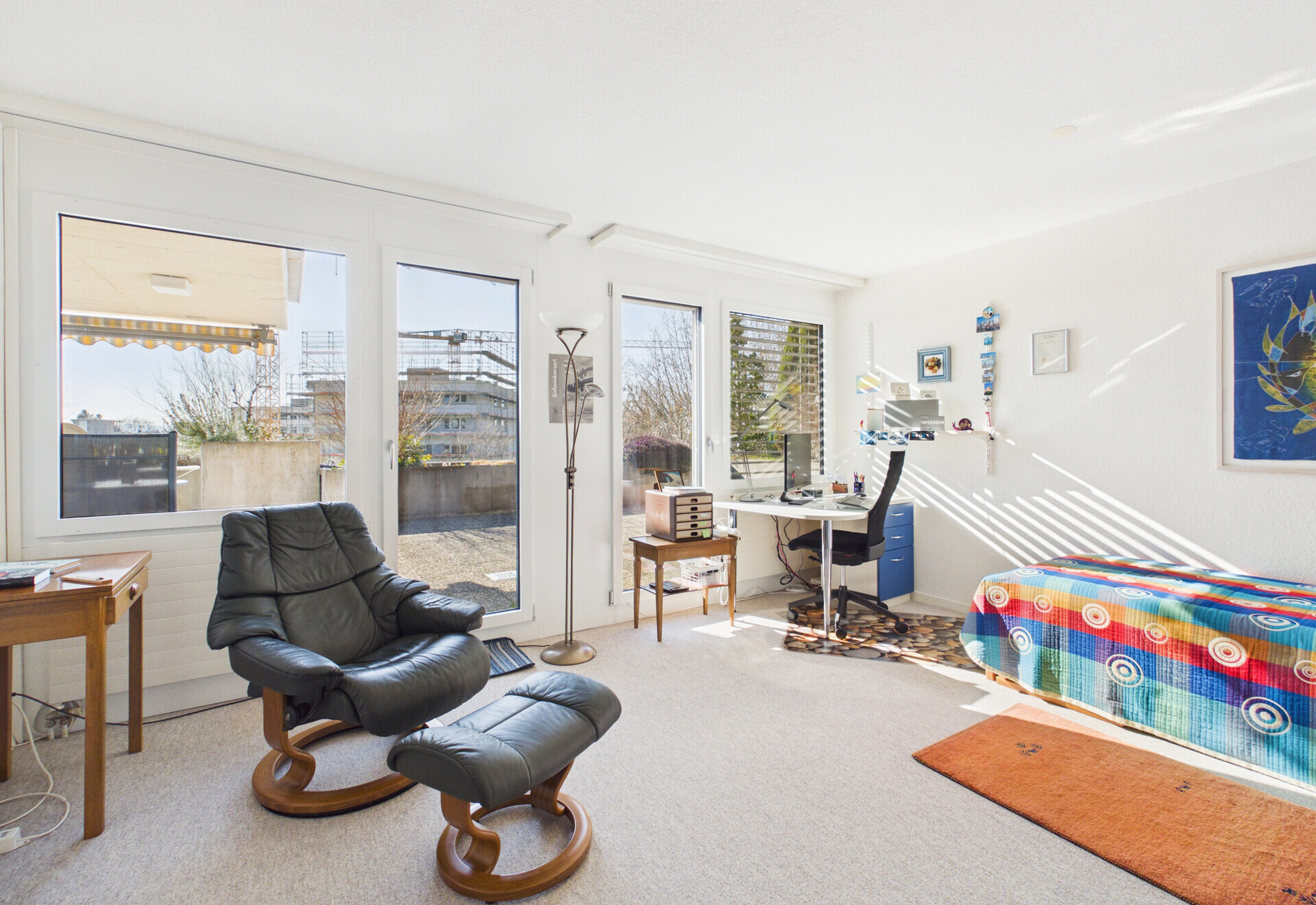 Über den Windfang betreten Sie den Eingangsbereich mit praktischer Garderobe. Der helle, lichtdurchflutete Wohn- und Essbereich mit abschliessbarer Küche lädt zum Verweilen ein und bietet einen wunderbaren Weitblick bis zum Gurten.Das Hauptschlafzimmer überzeugt mit eigener Ankleide und direktem Zugang zum Badezimmer. Das Zimmer 2 (ca. 20 m²) ist ein grosszügiger, lichtdurchfluteter Raum, der sich bei Bedarf mühelos wieder in zwei Einzelzimmer teilen lässt. Ein weiteres Zimmer eignet sich flexibel als Büro, Gäste- oder Spielzimmer.