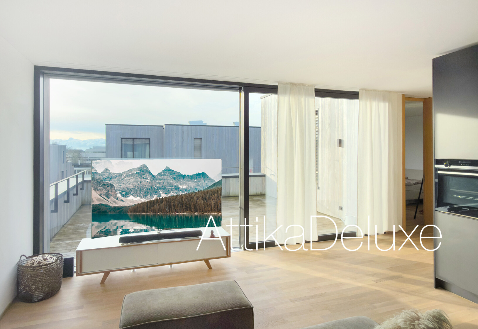 - Exklusiver Innenausbau: Edle Materialien, moderne Designküche und heller Holzboden